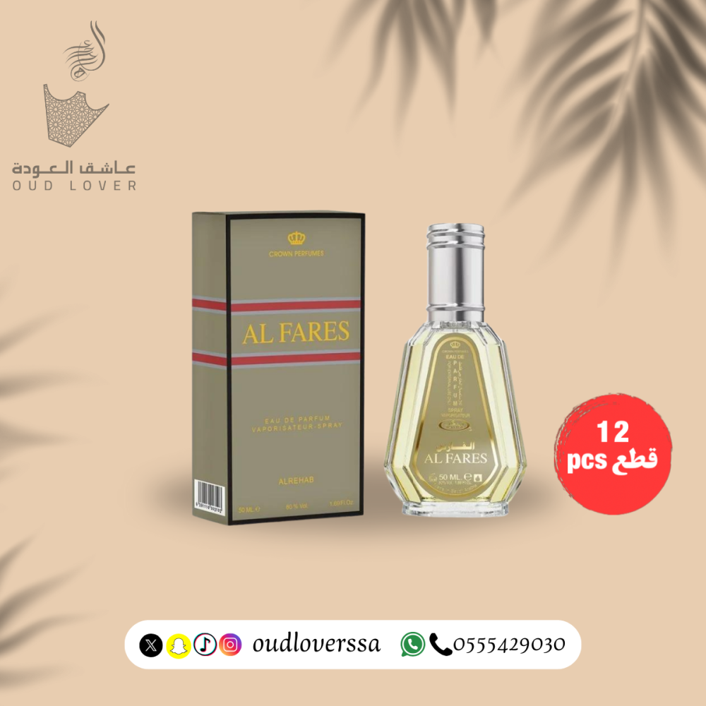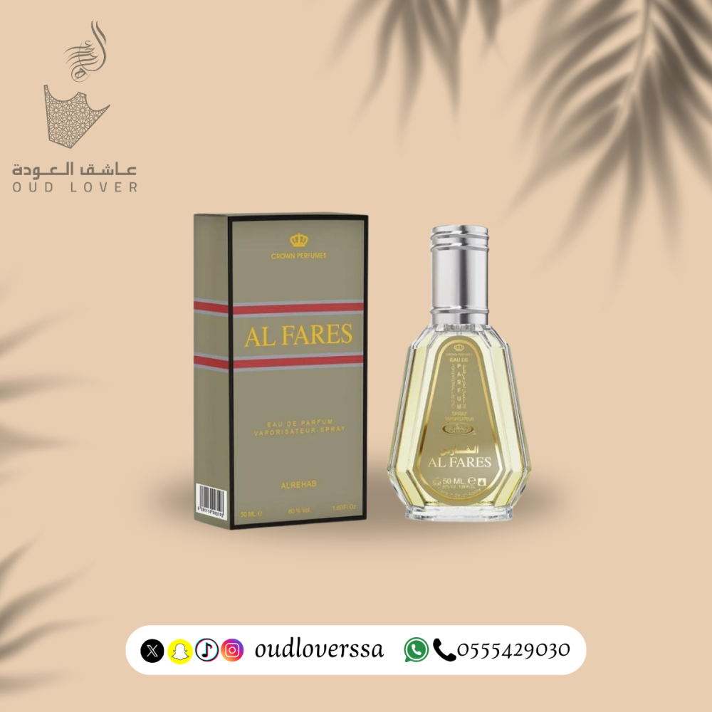 عطر الفارس من مجموعة ALREHAB إفتتاحية عطرية منعشة لبداية يومك من الخزامي, الليمون, البرغموت و اليوسفي،قلب عطري ذكوري وجذاب من المريمية, توت العرعر, الريحان, إبره الراعي, الكزبرة, الياسمين, زهر البرتقال, الزنبق و زنابق الوادي،قاعدة عطرية صلبة تتكون من خشب الصندل, نجيل الهند, المسك, خشب الورد البرازيلي و العنبر.